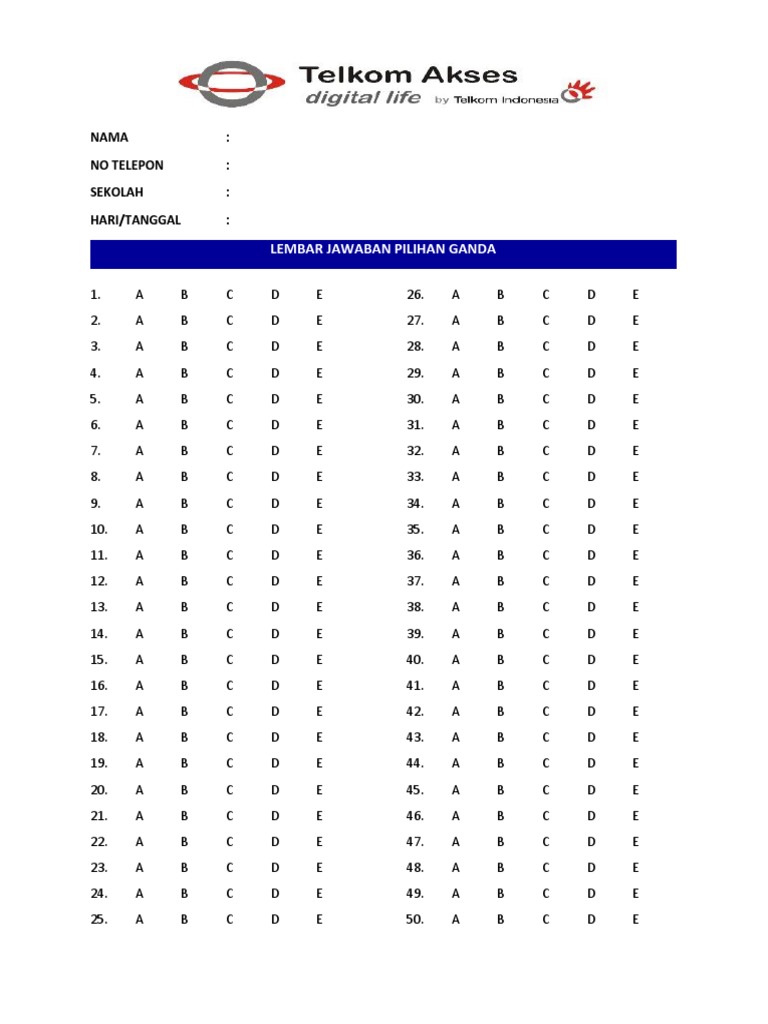 Download lembar jawaban pilihan ganda 50 soal smp.